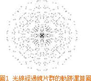 光線折射程度由玻璃的散射系數(refraction index)來決定,假如光學設計師知道光線接觸到第一片鏡片的點和入射角,他就能相當精確地計算出這一道光線折射的路徑,從而追蹤出光線的軌跡。我們也知道,點光源向四面八方輻射出光線(即光子[photons]),而只有部分光子會穿過鏡片。經由數學方程式仿真,光學設計師假設:所有進入鏡頭的光子能量都可被視為許多單一的光子射線(以后簡稱為光線)。這束光線經過鏡片群的軌跡也都能被計算追蹤出來.